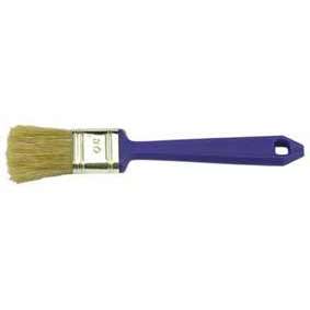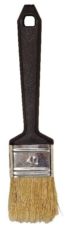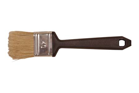 Platte kwast wegwerp 30 mm. Wit varkenshaar, vertinde bus, kunststof steel. Kwast voor éénmalig gebruik.